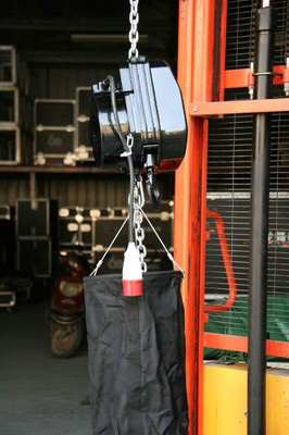 舞臺專用電動葫蘆可倒掛使用,嚴格按照巡回演出要求設(shè)計制作,表面黑漆處理,光亮持久;380伏的控制電路,熱處理成形的鋼導(dǎo)鏈板,操作簡便,便于維護;以正反雙向和全天候使用而設(shè)計,起重符合達3噸,配有可調(diào)螺旋式限位開關(guān),可靠性能更高;舞臺倒掛電動葫蘆提升高度可達38米 最低5:1的安全設(shè)計系數(shù) 鏈條鍍鋅處理,不易生銹,潤滑油脂裝在齒輪箱內(nèi),防止油滴滲透到舞臺上,舞臺葫蘆的馬達密封在鋁質(zhì)的鋼圈圓柱形外殼內(nèi),永久保馬達,適合與各種控制器和電路分電器相連。