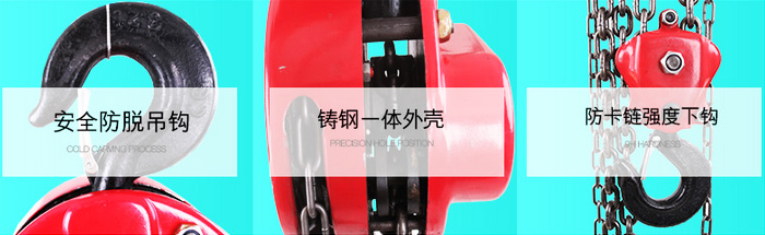 構(gòu)造:上掛勾、下掛勾、手拉式傳動(dòng)鏈條、起重鏈條、拉鎖輪、起重吊裝主輪、管理中心輪、掛勾商業(yè)保險(xiǎn)銷。