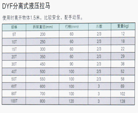 分體式液壓拉馬是以液壓起動桿直接前進移動,故推動桿本身不作轉動。鉤爪座又可隨螺紋直接作前進后退之調距,操作時只要把手前后小幅度擺動,油壓起動桿前移,鉤爪相對應后退,把被拉物體拉出。操作方便,使用省力,不受場地限制,本拉馬結構緊湊,使用靈活,重量輕,體積小,攜帶方便,適用于工廠、修理場所。