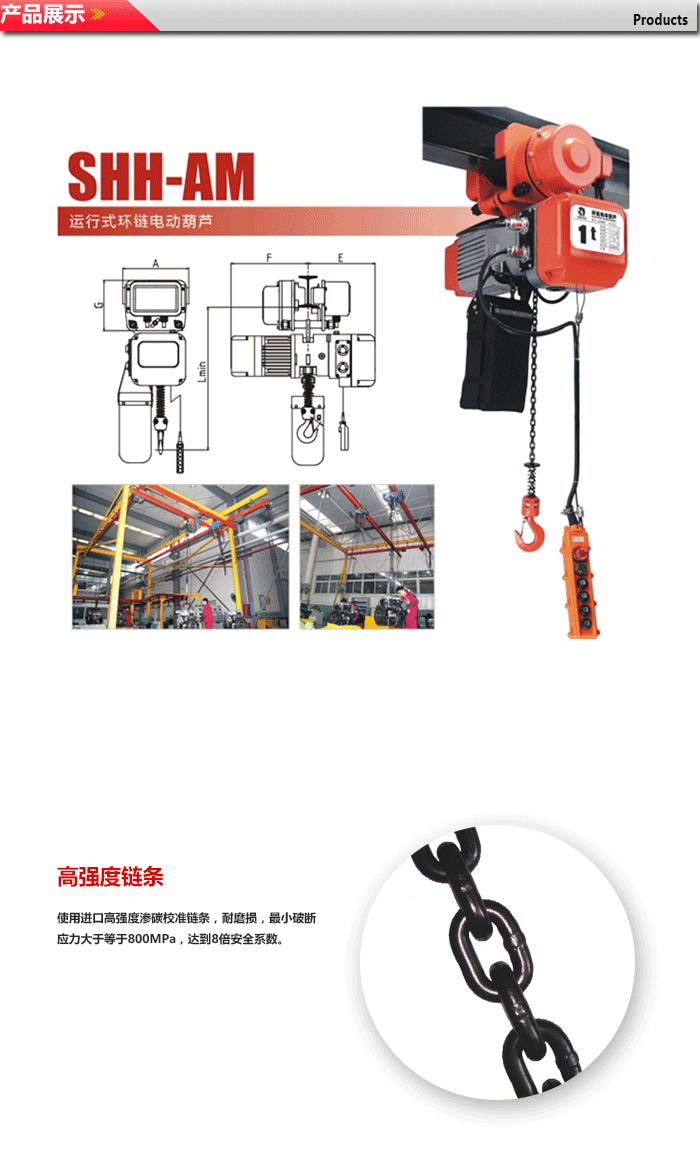 8.起重鏈條是特殊合金鋼制作并經過熱處理,不能私自進行焊接或改裝。